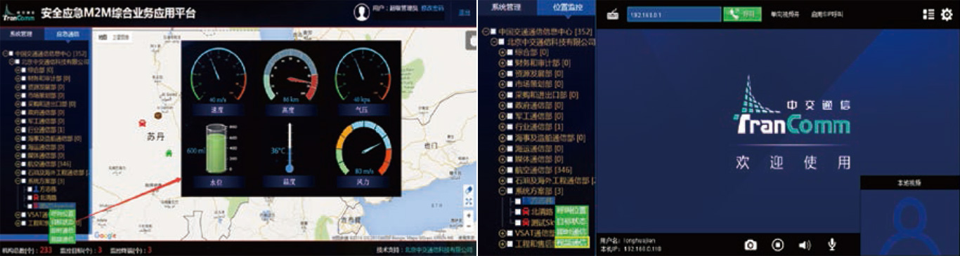 該平臺是一款BS結構的綜合業務應用平臺,實現了對IoT終端、海事衛星終端(便攜終端、車載終端、船載終端、航空終端等)、北斗終端的信息錄入功能,實現了對錄入平臺的終端進行位置獲取和定位,實現了在電子地圖上展示位置狀態信息及歷史位置記錄;實現了IoT終端獲取的溫度傳感器、環境監測傳感器等數據的回傳,并提供虛擬儀器儀表的圖形化展示;提供了基于海事衛星網絡的即時通信、數據文件通信和視頻通信功能;提供了對監測數據的綜合統計和數據分析服務。